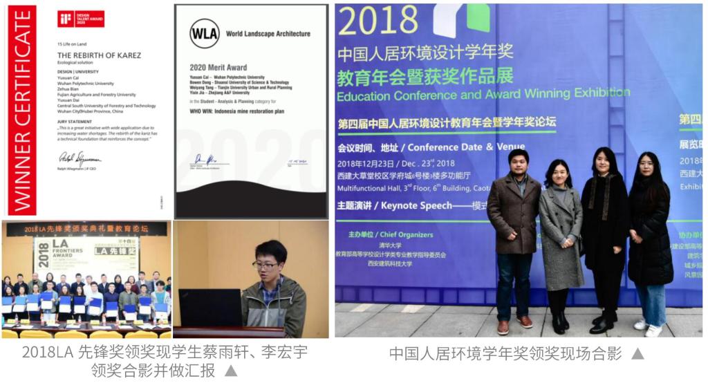近三年,本专业本科员工完成老员工科研项目多项,员工发表论文多篇。员工获得国际国内各级各类设计比赛奖励,包括德国IF红点奖,World Landscape Architecture奖,2021、2022米兰设计周中国高校设计学科师生优秀作品大赛国家奖一、二、三等奖,2021数字设计大赛国家三等奖、2018LA先锋奖,2020全国老员工广告设计竞赛国家二等奖。