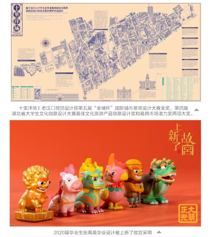 往届优秀员工有设计作品被江西省陶瓷博物馆收藏的珠山八友传承人吴超龙;有被选为武汉设计星共创导师、尖荷系全国设计实战导师的张文辉、翼鹏辉;在中国中铁三局、武汉中软通科技有限公司、东风乘用车公司等企业任中层管理的邢聪、石宇、肖振亚;打造了武汉市首家全方位运动赛事服务平台-武汉天天赛的CEO王志凌、自主创业开设食品品牌设计公司的张佳、李虎;在阿里巴巴闲鱼事业部负责农产品行业运营的吴艳秋;获IDC国际设计大赛卓越奖的故宫文创、OPPO、李宁、华润集团、梦幻西游等品牌的特邀插画师吴尧;食品包装设获2019 PACKCON STAR AWARD年度互动营销包装设计大奖的桂妲妮等;考上日本武藏野美术大学研究生的成柱臣;荣获第十六届中国国际动漫节“金猴奖•潜力奖动画短片”的黄妙梦等等。