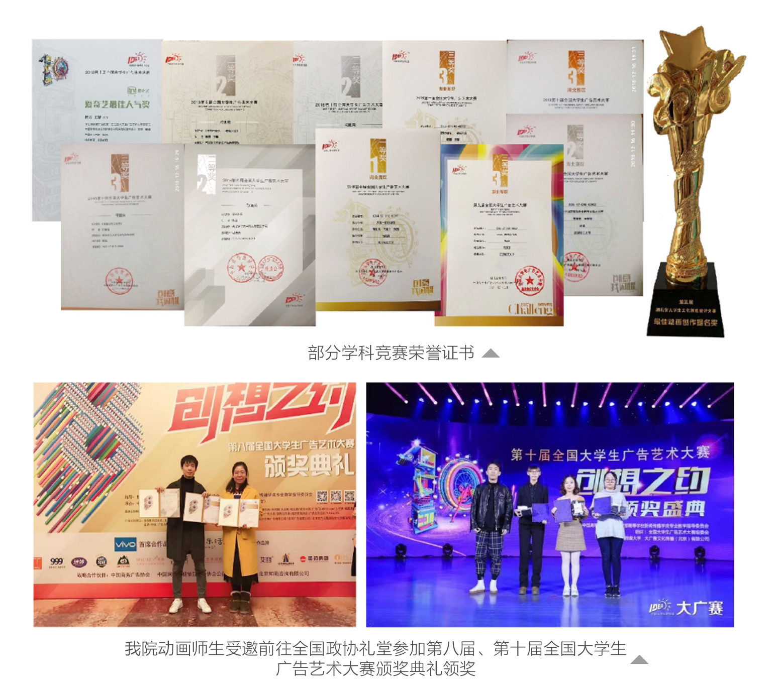 设计素描、设计色彩、设计构成、摄影基础、动画概论、动画速写、动画角色造型、动画运动规律、动画场景设计、分镜头脚本绘制、视听语言、动画剧本创作、二维动画制作、三维动画制作、动画短片创作、影视后期制作等。