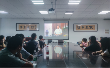 直播结束后,公司各年级员工代表向大家分享了自己的观后感。20级雷巧同学表示,她被奥运健儿肖若腾在遭遇不公的对待后,仍能坚定自己初心的精神所打动。19级陈湘君同学表示,今天的直播让她明白了了热爱、坚持、自信、感恩和谦逊的重要性。研究生代表赵陈颖则从上课的形式和近期的国际动态展开论述,表示感受到了祖国的强大和人民的自信。