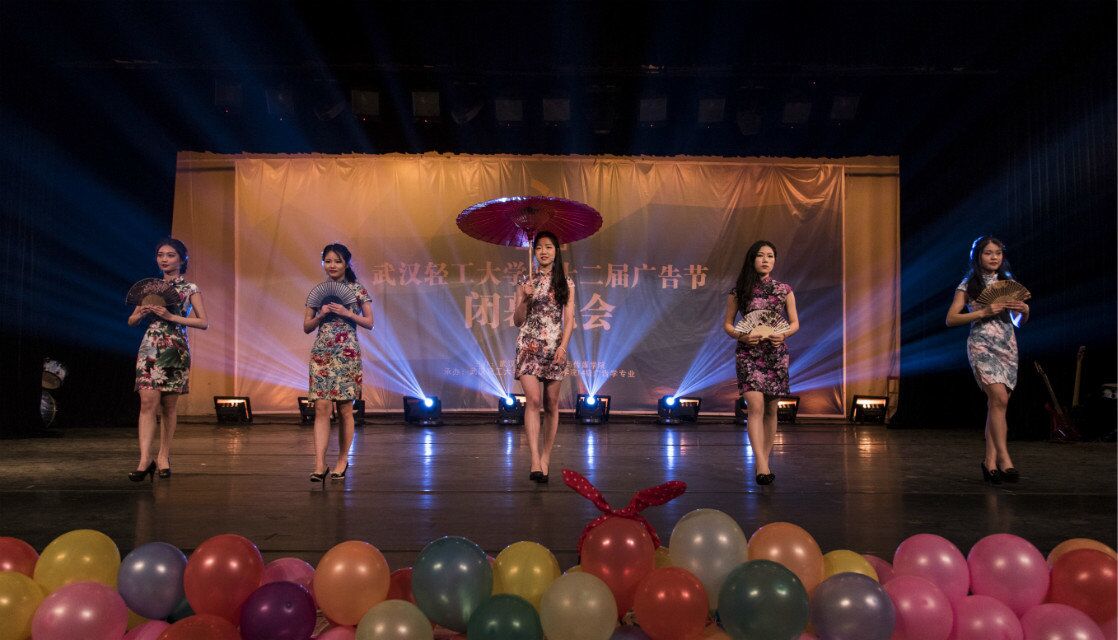 2017年4月12日晚6点,英国365上市公司第十二届广告节闭幕晚会在金银湖校区老员工活动中心三楼隆重开幕。杜先锋书记、李力副书记、廖前兰老师及广告专业的诸位老师均出席了本次晚会,晚会还邀请到了硚口区非物质文化遗产苏恒泰油纸伞代表苏纯先生前来观看。