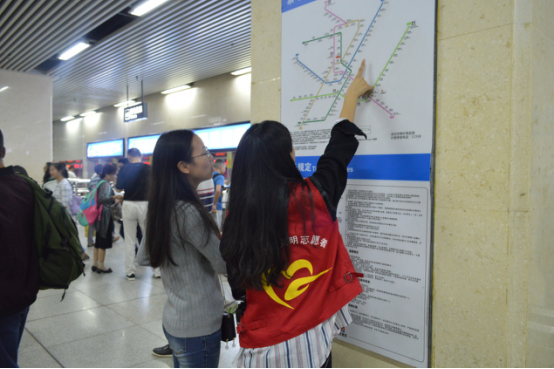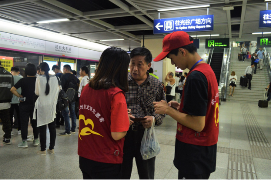 中午12时许,全体志愿者到达汉口火车站地铁站,十五名志愿者分别在不同的地铁出入口、自动售票机驻点,为行人解答疑问、购票指路。16级广告专业的王建宁同学多次帮助行人通过自动贩票机买取相应目的地的地铁票,耐心讲解毫不厌倦。活动结束后他感叹道:“志愿活动虽然很累,但我很享受这个过程。它是很有意义的,这点让我快乐。”同时,随机采访被帮助过的行人也表示,志愿者们不辞劳苦放弃周末休息时间为公众行方便,在陌生的地方能够得到别人的帮助,这是一件让人暖心的事情。在连续三个多小时的站岗值班中,没有一个志愿者抱怨诉苦,一直坚守着自己的岗位,用最真诚的心对待每一个需要帮助的人。