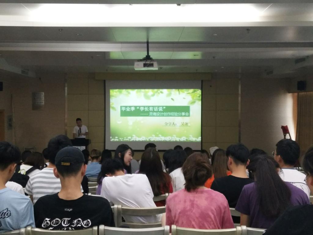 讲座的尾声还设计了“有问必答”环节,吴尧学长一一回答听众们的提问,和大家双向交流了许多问题,其中17级设计专业黄鹏同学提到关于艺术品自我娱乐属性的见解。吴尧同学回答到:“艺术品创作后期,设计者对艺术有了自己的理解之后,经常会进入一段自我娱乐时期,这是十分普遍的,也是形成自己独特艺术风格的关键时期。”