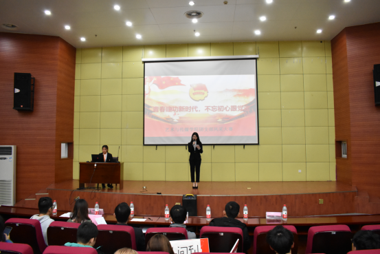 本次比赛主题为“青春建功新时代,不忘初心跟党走”,每个团支部都表现出积极向上,一心向党的优秀风貌。各个团支部依次由主讲人进行宣讲,在比赛中各团支部竞相绽放各自的风采,短暂的八分钟,既要完成团支部的宣讲,又要进行风采展示,这就要求所有成员团结一心、配合默契。精彩的节目展示是他们用课余时间认真排练的结果,即使时间到的提示牌已经举起,但是他们每个人都没有停止自己的表演,他们想将最完美的团支部风采展示给大家。其中包括唯一一个参加本次比赛的16级团支部,广告1602团支部进行了《光荣啊,中国共青团》朗诵和《国家》手语的表演,自信而大气,大三的学长学姐们,用他们优秀的团支部建设,为各位后来者充当了榜样。