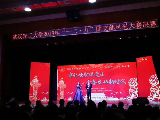 青年大学习,奋斗新时代。初场环节,经过层层选拔后的十二个团支部通过抽签顺序依次上台通过视频进行支部展示,并由各团支书辅之以精彩解说,各团支部对自己支部建设、概况、成果以及班级logo进行精彩解说,在团支部演示之后,直接由各评委进行现场打分。