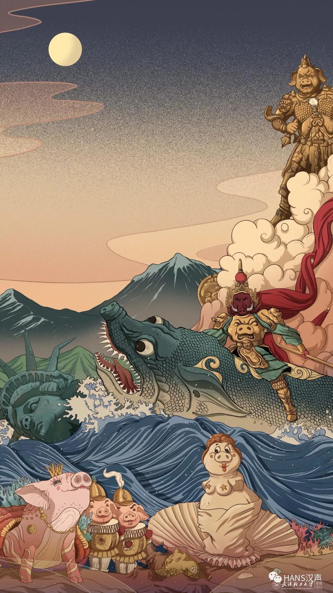 他笔下的猪,不是传统的吉利生肖年画,也不是卡通佩奇,而要霸气的统治世界,从海底到外太空。