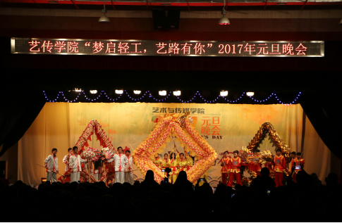 本次晚会以"梦启轻工,艺路有你"为主题,为老师和同学们献上了一场精妙绝伦的视听盛宴。随着玄赤协会龙队的舞龙表演的登场,元旦晚会正式拉开了序幕。三条龙在同学们的演绎下好不生动活泼,上天入地来去自如,点燃全场的火热氛围。