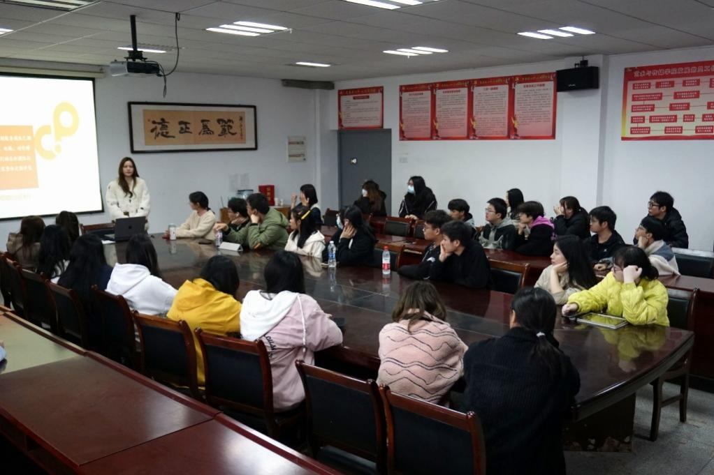创宇极网络科技有限公司负责人向同学们介绍公司环境、关于我们、职业发展方向以及人员需求。
