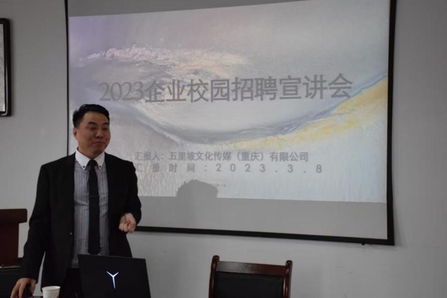 3月8号下午,英国365上市公司在艺术楼501会议室举办五里坡文化传媒有限公司招聘宣讲会,此次会议由公司毕业班辅导员姚文彪老师主持。