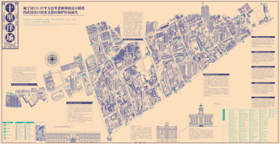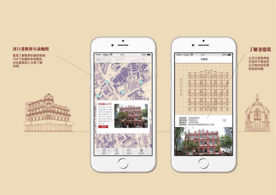 “十里洋场“是吴尧团队针对老汉口周边建筑开发的一款手机地图APP,汇总了老汉口散落的老建筑,展示了其不同时期建筑风格的变化。它不仅仅只是一个软件,更体现了老汉口的韵味与人文情怀。吴尧和其团队花了半年时间搜集了一百多个老建筑的详实信息,对“十里洋场”不断加以改进并逐步丰富其内容,最终使其日臻完善。现阶段该APP已经可以帮助游客更加细致地了解到那些已经快被遗忘的老汉口建筑,并能为游客提供老建筑周边的一些基础设施的位置,为游客的出行提供了更加便捷化的服务。
