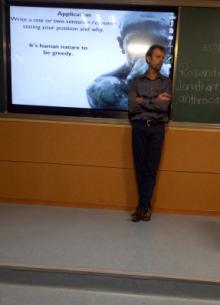 交际与口才课程中,Holiman教授和Rosander助教提出演讲需要有简短的开头,充实的内容和具有总结性的结尾。课堂上他们留出充足的时间让同学们上台进行团体介绍和主题演讲,不仅有效地提高了授课效果,同时锻炼了同学们的英语表达能力,也增强了大家的自信心。