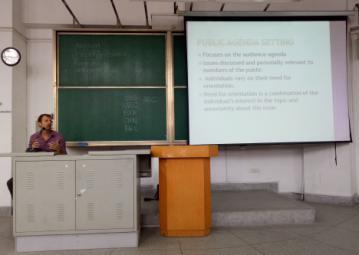 在基础楼311教室进行的题为“议程设置Agenda Seting” 的系列讲座中, Jonathan教授通过描述大众传媒对人们思考的影响,充分阐述了“Agenda Seting”的重要性及类别。