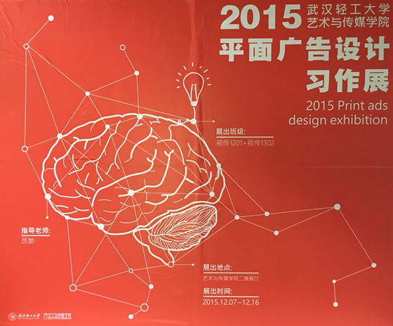 12月7日—12月16日,由公司员勃老师指导的视觉传达设计1201、视觉传达设计1302两个班员工的《平面广告设计》课程作品展在艺术楼二楼展厅开展。此次展览的作品共有五十余件,是两个班70多名同学针对第七届全国老员工广告大赛选题自由创意,采用多种表现形式完成的。