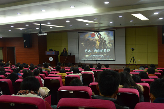 本次讲座旨在通过自由对艺术历程做一总结,袁老师围绕着“艺术.自由的象征”展开了本次讲座,介绍了自由的内容与含义:自由是一种免于恐惧、免于奴役、免于伤害和满足自身欲望、实现自我价值的一种舒适和谐的心理状态。从艺术的起源入手,列举了古埃及、古希腊、古罗马、中世纪的艺术形式只是局限于神话与宗教,艺术家们创作的作品都是神话中的人物。随后艺术继续发展,题材变得非常广泛,风景画、自画像都已经出现,并有大量艺术家产生,如文艺复兴时期的拉斐尔、米开朗基罗、达芬奇,还有米勒、莫奈等。接着,艺术由印象派转变为抽象表现主义,把世界看成是几何形,艺术也更加风格化,使人的个性得以解放。个性得到解放后人的思想也会进一步解放,这便是当代艺术,即让思想成为艺术,艺术的非物质化。这样,艺术便完成了从神话和宗教的局限到个性和思想的解放,成为我们现在看到的艺术。 整场现场气氛热烈活跃,不时传来掌声和喝彩。袁老师对同学们提出的问题做出了详细认真的解答。讲座在一片和谐完满的氛围中结束。