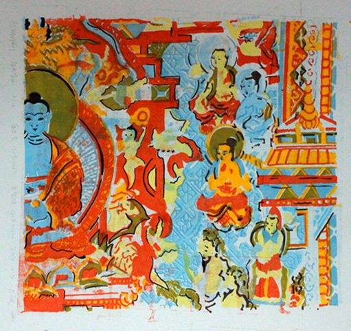在此次展览中,最引人关注的是视觉传达设计专业 1201班全体同学集体创作的丝网版画作品-“唐卡”,每个同学“认领”一个唐卡局部进行丝网印刷创作,完成后整合为一件巨幅丝网版画唐卡,这个过程很好的锻炼了大家的协作与时间能力。