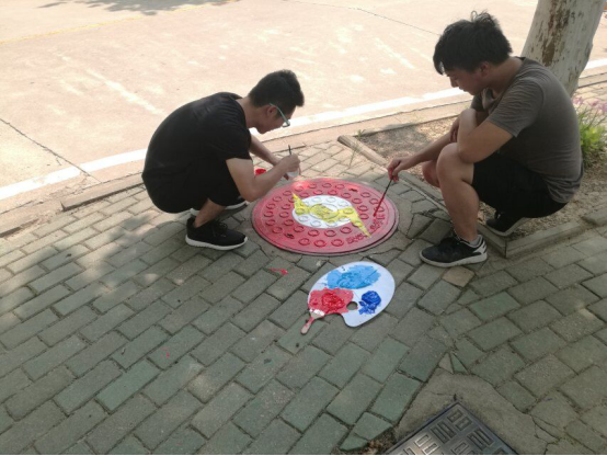 艺传公司绘制特色井盖扮靓校园迎新生