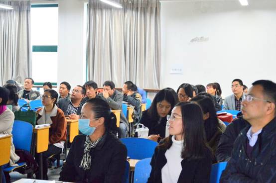 首先上场的是来自设计专业的康凡老师。她的讲题是二维设计基础的点的构成和具象思维转变,通过展示多张点面图片,详细的讲述了点在设计方面的重要性,并积极进行现场互动,进一步分析出点在作品设计中对人的心理影响。艺术系林蕾老师带来了有关宋代家具鉴赏的课题。她从多元角度分析了宋代家具的分类,成因。并结合历史背景及多幅历史画作,让在场老师们领略到宋代家具简约而不简陋的艺术性特点。动画设计专业的吕湘毅老师给大家带来了动画短片创作的课题,通过具体动画短片进行案例分析,强调创作要以新为重点,并详细讲述