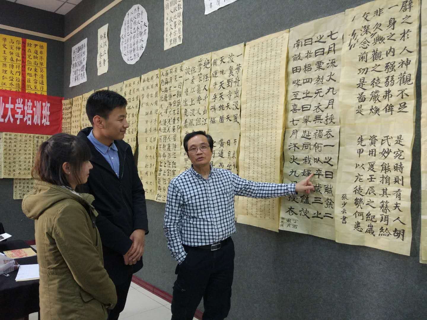 本次书法团队培训由乌鲁木齐职业大学师范公司承办。讲学完毕归校前夜,培训班辅导员向邹教授转达受训学员的赞美之辞:邹教授所讲内容实用而新颖,极大满足了受训老师的迫切所需;每次课幽默风趣的教学赢得了学员诸多的掌声和笑声。