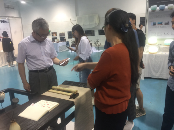 开幕式结束后,公司党委书记谭晓明专门抽时间参观了本次设计作品展。他对学子们的创意给予高度的肯定和中肯的意见,表示每一件作品都饱含了他们的理解和对美的感悟,同时也凝结了所有老师的辛勤劳动与智慧。最后他祝愿所有的学子都可以很好的运用专业知识和技能,设计出更好的作品。