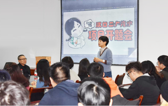 开题会现场,武汉恒润拾运营管理有限公司的谢总作为汉口“二厂汽水”的品牌负责人对项目背景做了详细的介绍。他指出,此次项目以“国货潮牌饮料”为内核;以“国潮澎湃,汽场全开”为理念,对“二厂汽水”不断创新复刻。而此次合作选择艺传公司作为设计合作方,是因为公司每年的毕业设计作品展以及同学们的设计专业水平给他们留下了深刻的印象,特别是在关于地域的文化主题设计和食品品牌的相关设计领域尤为突出。他非常期待能通过此项目的合作,让同学们能在这个项目上充分展现自己的才华,同时也给企业助力。