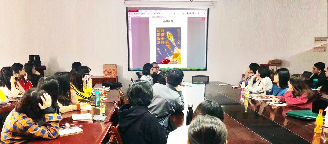 随后,陈莹燕教授作为合作项目的院方负责人讲话。她认为,促成此次项目合作有三个因素,一是汉口“二厂汽水”的品牌打造项目契合了公司聚焦食品设计领域的研究方向;二是引入商业项目能充分发挥专题设计课程的灵活特点,从加强产学研方面入手,提升员工的创新意识和创新能力,让员工在企业限定的约束条件下进行设计,使他们的设计能力得到更切实的锻炼,将理论与实践融会贯通,认识市场与企业、消费者和生产者之间的平衡点,从而形成“合理的、可实现的、能产生附加值的”创意。三是作为该产品的主力消费人群,我们的员工在这个设计上有先天优势,特别是擅长城市文化挖掘且有插画特长的同学更有一展身手的机会。