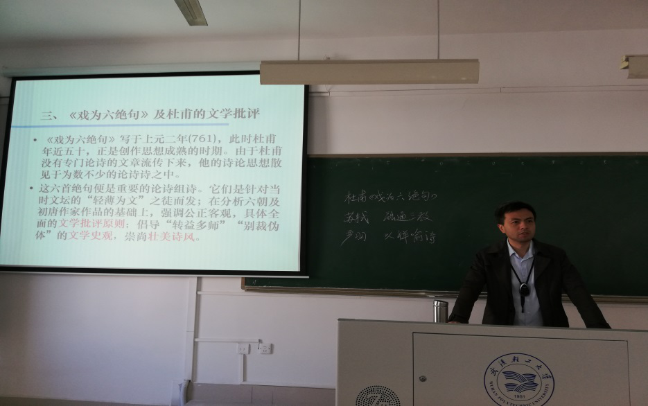 刘科军老师在两节课的教学中,坚持理论讲授与师生互动相结合的教学理念,采用小组讨论、练习演示、情境模拟等有效教学方式,深入浅出地阐述了“杜甫《戏为六绝句》‘以诗论诗’、严羽‘以禅喻诗’”的批评特色,引导员工从唐宋时期“儒释道”三教文化融合的角度,理解杜甫、严羽文学批评思想的深刻内涵。