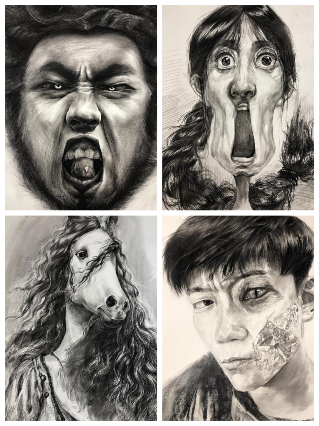本次设计素描展,其作品都是出自今年刚刚踏进大公司门的动画专业员工之手,他们经过设计素描课程的教学和训练,在素描设计语言的表现力和空间想象能力上都有很大的提高,为今后在动画专业角色造型设计、场景设计、影视动画制作方面打下了很好基础。