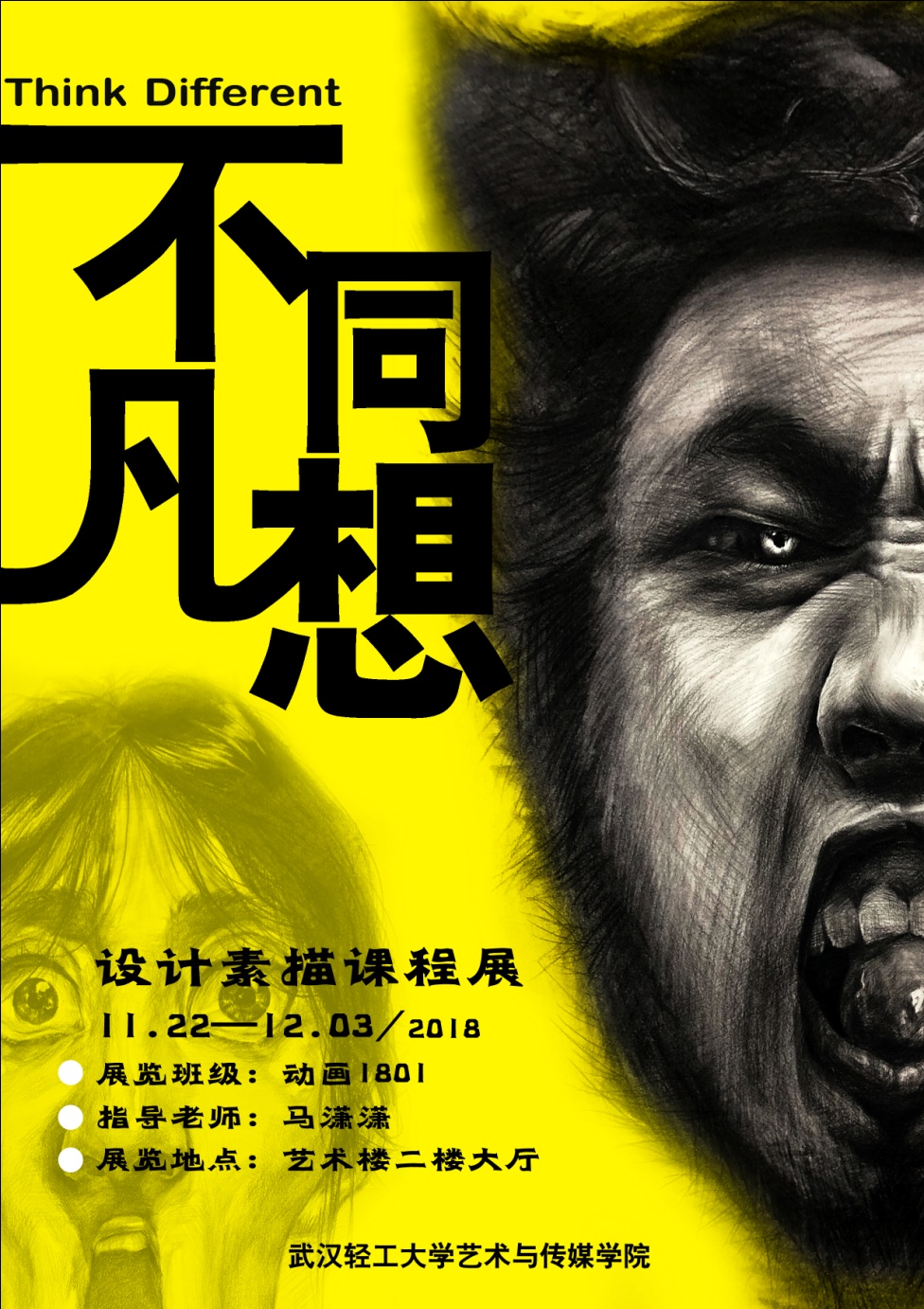 2018年11月22日,由公司马潇潇老师指导的非同凡想《设计素描》课程作品展在艺术楼二楼大厅拉开帷幕,展览持续到12月3日。此次展览的作品共有五十余幅,所展出的作品均由动画1801班的同学创作。在马潇潇老师的指导下,同学们站在艺术的角度将自己独特的思维融入作品之中,给大家带来了一场视觉盛宴。展览借用“非同凡响”一词,改为“非同凡想”,正是由衷肯定了这群刚刚踏进大公司园的同学们的想象力和创造力。