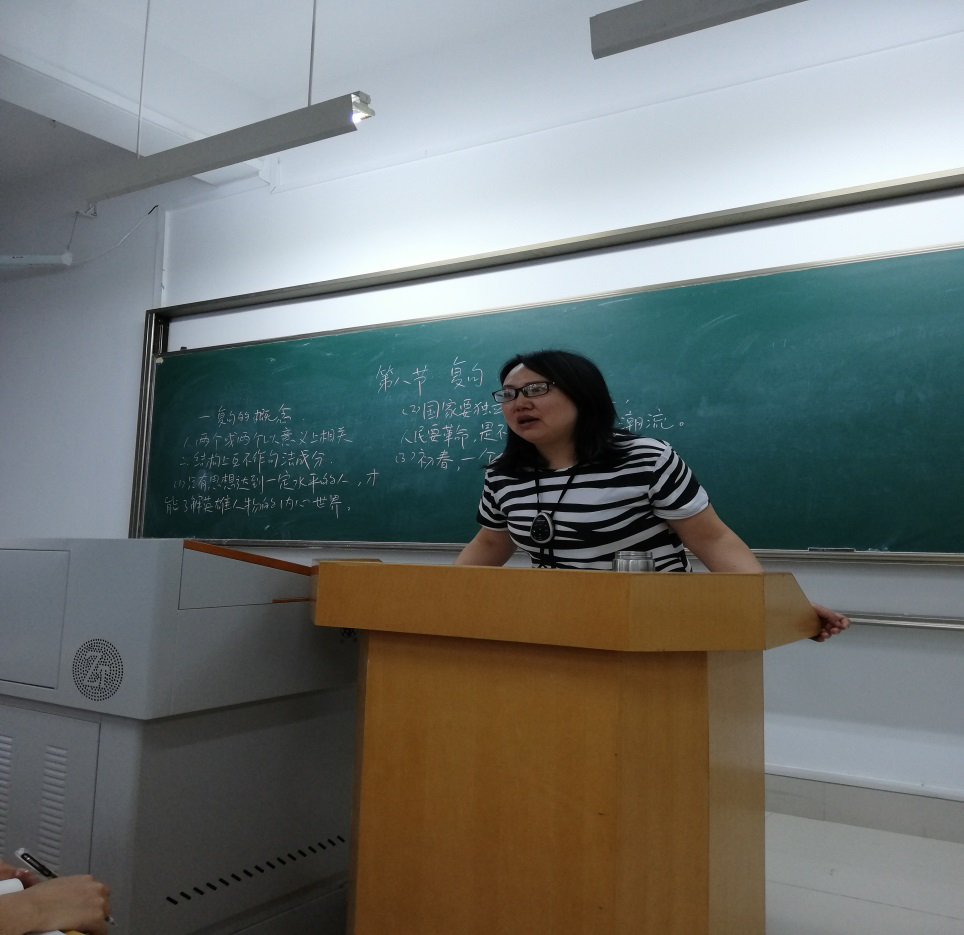 苏敏老师在课堂上阐述了复句的概念,介绍了复句的意义类型。课堂教学活动分为三个环节:例证讲解、练习闯关、总结提高。首先,针对划分、确定复句成分性质的难点,苏敏老师精心准备了复句例证,通过讲解划分经典复句成分,深入浅出地传授了划分复句意义类型的方法。其次,为了提高员工语言学习的迁移能力,还在课堂上设置了练习闯关活动,按照难易梯度设置了复句语法分析题,员工踊跃参与答题,答题正确率高的员工成为优胜答题选手。最后,揭示易错题的语法现象,辨析联合复句、偏正复句、因果复句等等复句成分的细微差别,做到了举一反三、理解透彻。课堂教学进程设计科学合理,符合员工的学习接受心理,师生互动频繁,双向交流好,较好地结合了理论知识与实践理解。