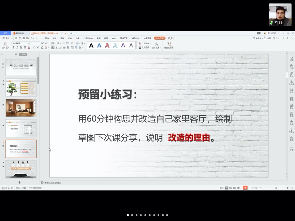 2020年5月11日下午,由于疫情的特殊原因,环境设计教研室在线上腾讯会议室(会议 ID:231 184 860)举行了本学期观摩公开课活动。本次公开课由刘非老师主讲,讲授课程为《室内设计原理》,授课班级为环境设计1801班。环境设计教研室的陈熙老师、季岚老师、王枞聪老师及贾玉劼老师参与了此次观摩课学习活动。