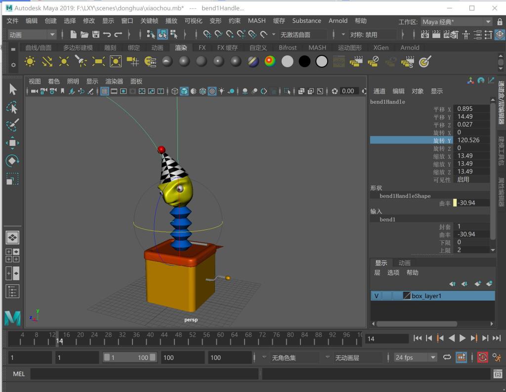 吕湘毅老师的课堂设计分为三个部分:理论讲解、实际操作和互动表演。在理论讲解部分,围绕理解Create Deformers变形器讲解,并对Nonlinear的操作,作为本课程的教学目的。在实际操作部分,讲解:Bend弯曲、Flare闪光、Sine正弦、Squash挤压、Twist扭曲、Wave波浪等命令的实际操作。在互动表演部分,分为6组,每组派一名员工来表演自己心目中的小丑。通过练习,将Bend、Squash、Twist配合使用,合理安排时间,掌握好节奏控制和衔接下一个动画的开始。大形不改变,员工可以加入想法和现有能达到的技术来完成这个练习。