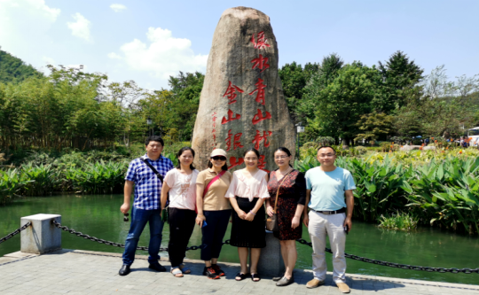 9月5日上午,团队成员一行首先来到“两山”理论诞生地天荒坪镇的余村实地考察。2005年8月15日,时任浙江省委书记习近平同志视察余村,提出了“绿水青山就是金山银山”的重要论述,此后在这一“两山”理论的指引下,余村从过去依靠矿山水泥厂发展“采石经济”向乡村绿色产业发展的“生态经济”转型,实现了从以牺牲环境为代价向以保护乡村环境为优势的“生态蝶变”,如今余村已开辟了一条生产发展、生活富裕、生态良好的新路子,成为了中国美丽乡村的践行地和“模范生”。 2020年3月30日,时隔十五年,习近平总书记再次来到余村考察,肯定了余村的发展模式及实践经验,他说:“美丽乡村建设在余村变成了现实。……绿色发展的路子是正确的,路子选对了就要坚持走下去”。在余村,团队成员先后考察了农创商店、文创市集、田野观光区、“两山”理论纪念碑、余村党群服务中心,并在余村文化礼堂观看了“绿水青山就是金山银山”专题纪录片,深切领悟了习近平总书记所讲的“生态本身就是经济,保护生态,生态也会回馈你”的科学论断。
