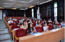典礼在国歌声中拉开帷幕。经理陈莹燕向新生致欢迎辞。她向今年招收进来的68名各专业研究生表达了热烈的欢迎,希望2020级新生们能够尽快熟悉校园环境,在新的学习环境中与导师进行密切交流与沟通;在即将的专业学习中多进行课程实践以及课外实践,实现自身的综合发展。