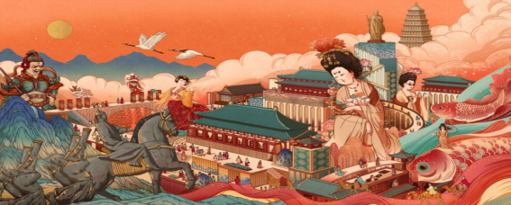 吴尧学长如今已是故宫文创、OPPO、李宁、华润集团、梦幻西游等大厂品牌的特邀插画师。近期,他还为大唐不夜城创作了一幅插画,除了绘制插画外他还设计了一波有浓郁大唐色彩的文创衍生品。