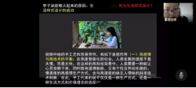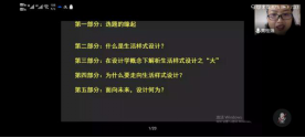 讲座伊始,黄教授向大家介绍了选题的缘起,她着重讲述了生活样式设计专业委员会这个组织的缘起,解释了什么是生活样式设计,并例举说明了为什么青田村乡建、李子柒能成功的原因和昆曲中的舞台美术设计等例子,让大家对生活样式设计有了更深层次的认知和了解。随后,黄教授解析了生活样式设计之“大”的具体内涵,针对“我们为什么要走向生活样式设计”这一问题进行了深入浅出的分析,使人易懂。最后,黄教授就“面向未来,设计何为”提出了相关的指导,强调设计要和别的学科专业相结合,不能故步自封。