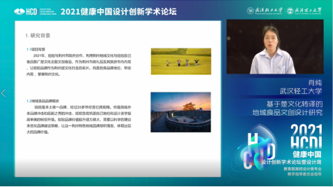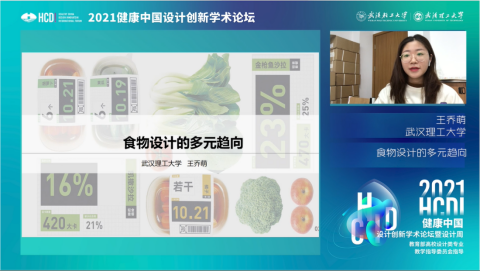 武汉理工大学硕士研究生王乔萌以“食物设计的多元趋向”为题,从未来食物设计的三大趋势——关注可持续发展、关注人群健康、关注本土食物文化三个方面进行了食物设计的案例分析,提出食物设计的多元发展要关注可持续性、健康性和文化性。