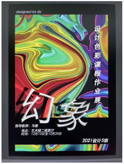 本次展出的作品全部出自2021级设计5班同学之手,其中多数是课堂主题色彩设计训练的作业,在专业任课马骏老师的精心辅导下,用很短的时间画出这些手法各异具有创意的作品,此展览展出至12月25号。