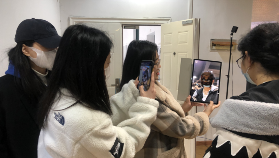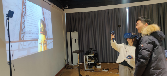 团队还邀请了现场的师生亲身体验土家族传统村落数字化展示项目,全体师生对该项目产生了浓厚的兴趣。在项目团队成员的指导下,师生踊跃上前进行现场体验,身临其境的游览土家传统村落,感受土家族的风土人情,并在虚拟展厅中看土家傩面具、土家织锦、土家吊脚楼、土家歌舞、傩戏表演……此次活动也激发了师生对于土家族传统文化的热情。