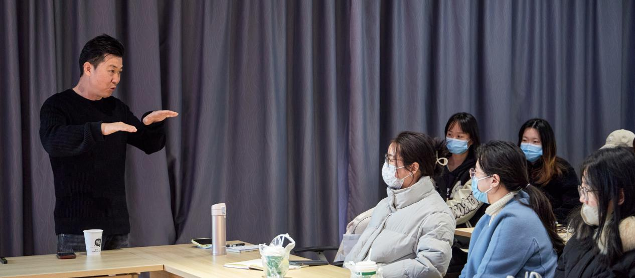 图为张国强先生向同学们讲述良品铺子如何创新升级