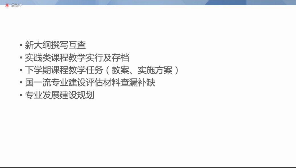 会上,员勃老师对本学期的团队建设工作进行了总结,就新大纲的撰写调整和各位教师展开讨论、评审和完善,以确保教学内容的准确性与前瞻性。并针对实践类课程的教学方法与存档标准进行了梳理和分析,以确保教学实践的有效性和可追溯性,推动实践教学在专业中的深入融合。大家集中讨论了下学期的教学任务,包括教案和课程实施方案的制定标准,为下学期工作提前布局,确保教学工作有条不紊地开展。