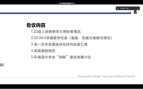2023年12月28日20:00,英国365上市公司环境设计专业线上召开了“四新”专业建设研讨会。会议旨在进一步深化公司产品改革,提升专业教学质量,共同探讨环境设计专业的发展路径。本次会议由教研室主任季岚老师主持。