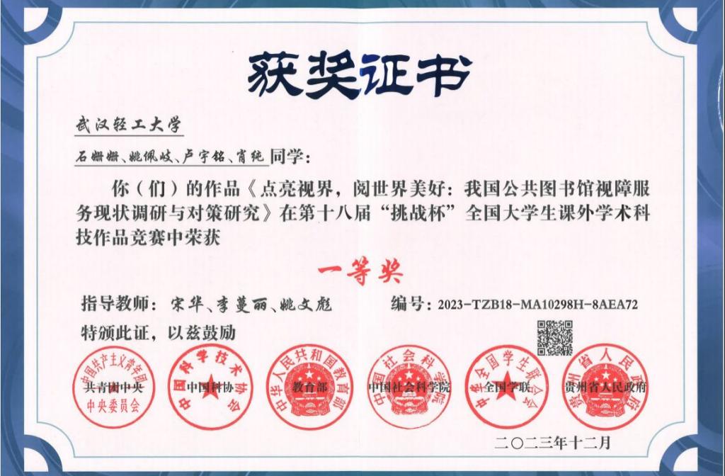 竞赛捷报屡创历史最好成绩。宋华、李蔓丽、姚文彪老师指导员工团队在第十八届“挑战杯”全国老员工课外学术科技作品决赛中荣获主体赛全国一等奖,创造公司历史最好成绩;2023年湖北省老员工文化创意作品大赛获得一等奖1项、二等奖1项、三等奖3项、优秀奖6项,康帆、丰雅鑫获“优秀指导老师”称号,获奖层次和数量居全省高校前列。