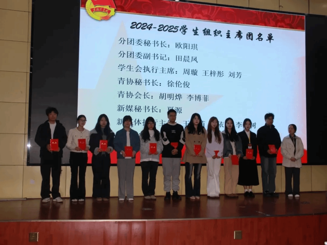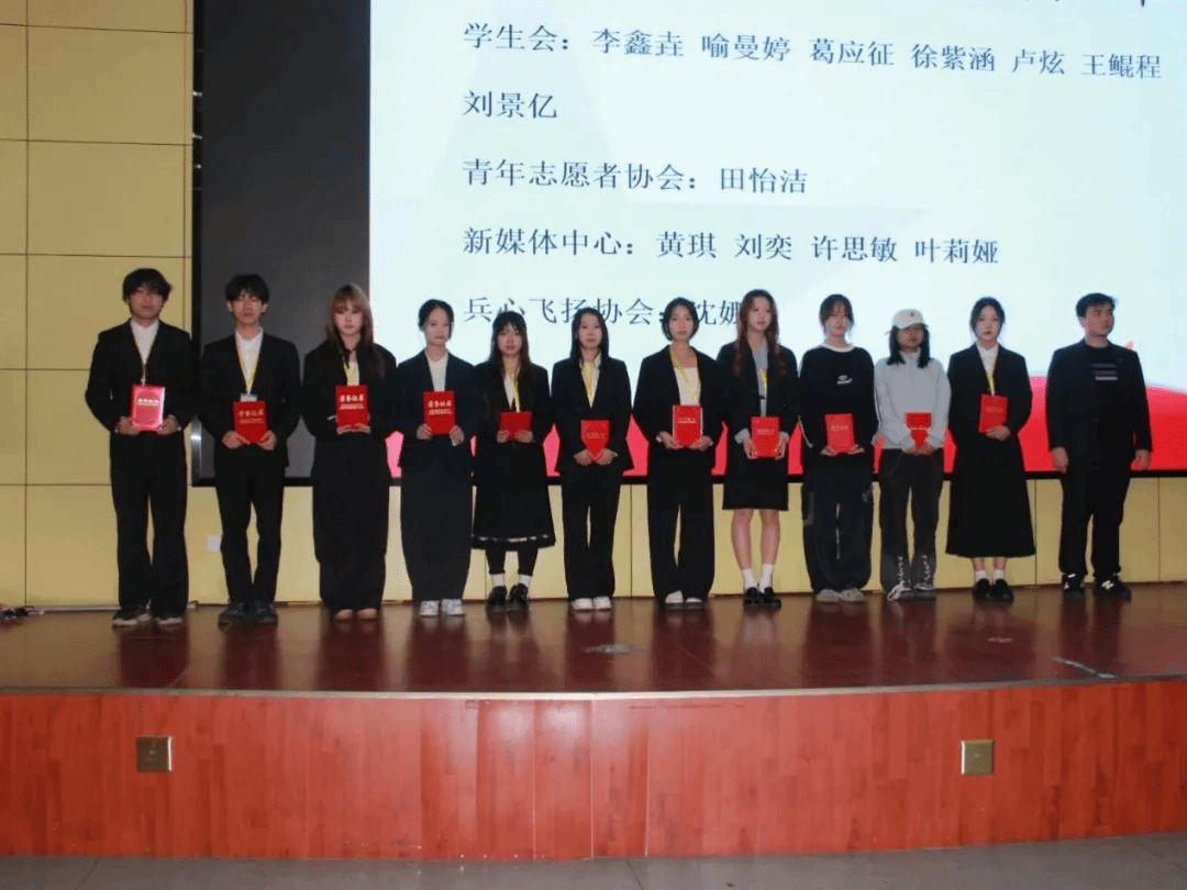 余书记、田老师分别为2024-2025学年主席团成员、优秀部长颁发荣誉证书。会议宣布了新一届员工会、青年志愿者协会、新媒体中心、兵心飞扬协会部长及以上员工干部成员名单。