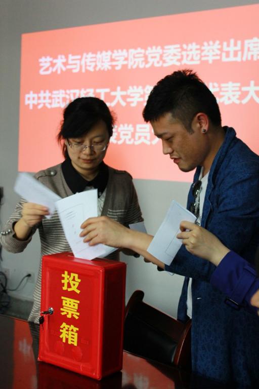 4月16日,艺传学公司党委选举出席公司党代会代表党员大会在艺术楼501会议室成功举行,党委书记杜先锋、副书记吴德明分别主持教师与员工党员代表选举大会,全体教师党员与员工党员参加本次大会,共顺利选出公司出席公司党代会代表8名。