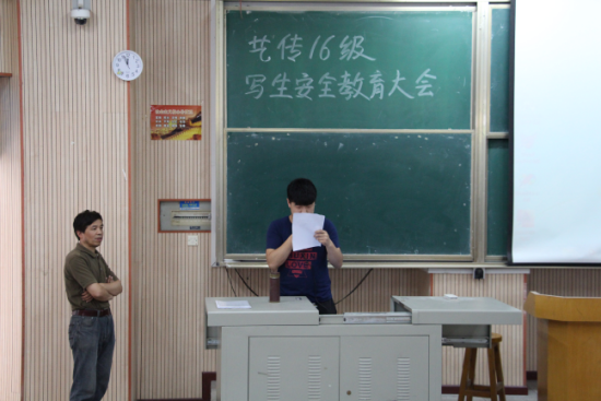 会议的最后,王洋同学宣读了《安全保证书》的内容,16级艺设专业的全体同学在《安全保证书》上签名,写生安全教育大会圆满结束。