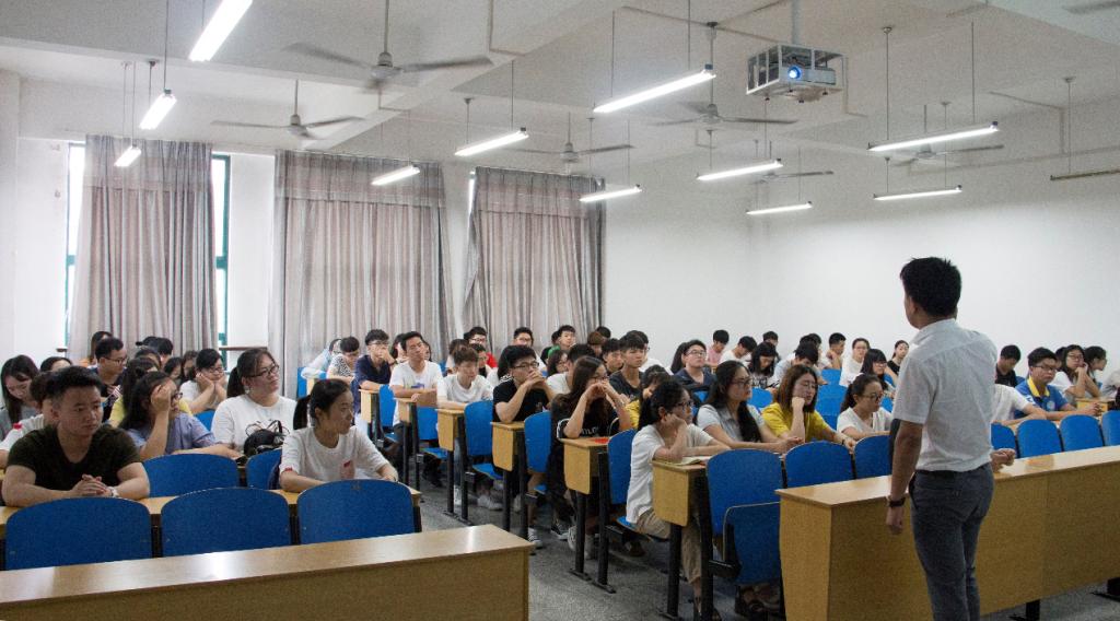 会议刚开始,郭先生便以学长的身份与同学们分享了自己刚踏入社会时的职场经历和内心感受。随后,郭先生从企业文化、企业发展历程等方面详细介绍了了三鼎盛世投资集团,让在座的同学们对“三鼎盛世奖学金”的来源有了一个全面的了解。通过对“一个基地、一则奖励、一次机遇”的讲解,郭先生向同学们介绍了三鼎盛世集团与公司之间的合作项目与奖学金计划。他还告诉同学们要抓住校企平台所提供的机会,通过平台先感受企业管理。演讲之余,郭先生与同学们做了个计算就业后工作时间的小游戏,并以此告诫同学们要珍惜时间,毕业后供自己在职场拼搏奋斗的时间并不多,要通过平台提前解决自己的就业问题。最后,大家向郭先生咨询了关于面试时间、培训内容等方面的问题,他也为同学们做了详尽的解答,现场气氛十分活跃。