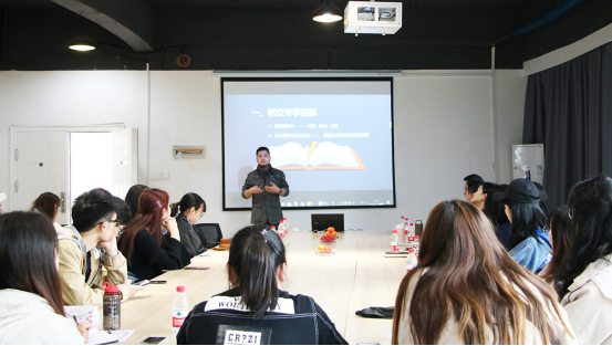 公司产品设计专业的潘伟晨学长作为应届优秀考生首先发言,他先分析了考研形势和院校选择,然后重点介绍了学习英语的心得。学长特别强调了英语在考研中的重要性,建议艺术设计类考生在备考前期每天英语学习时长应该在3小时以上,后期可以不超过2小时,考研英语只要用心去学,人人可过线。学长通过自身努力,这次考研英语考出了78分的好成绩。