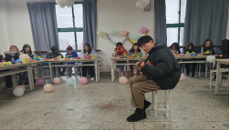 活动伊始,由主持人叶世奇宣布本次晚会正式开始,教室响起了热烈的掌声。本次晚会第一个热身活动——心心相印,以寝室为单位分为了7个小组,每个小组第一个人通过抽签方式抽中四字成语,并向下一位成员进行模仿,最后要正确回答出这个词语。本活动烘托了班级氛围,缓解了紧张的情绪。