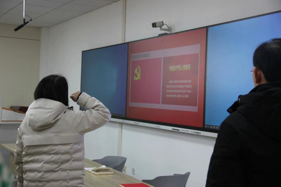余艺副书记带领预备党员面向党旗宣誓。凝视着鲜红的党旗,坚定举起在身侧的拳头,铿锵的誓词回响耳畔。向党旗宣誓,是党内政治生活的重要仪式,也是党性教育的重要载体。理解入党誓词背后的语义千钧,以拳拳之心践行誓言、殚精竭虑,是全体党员的使命职责。
