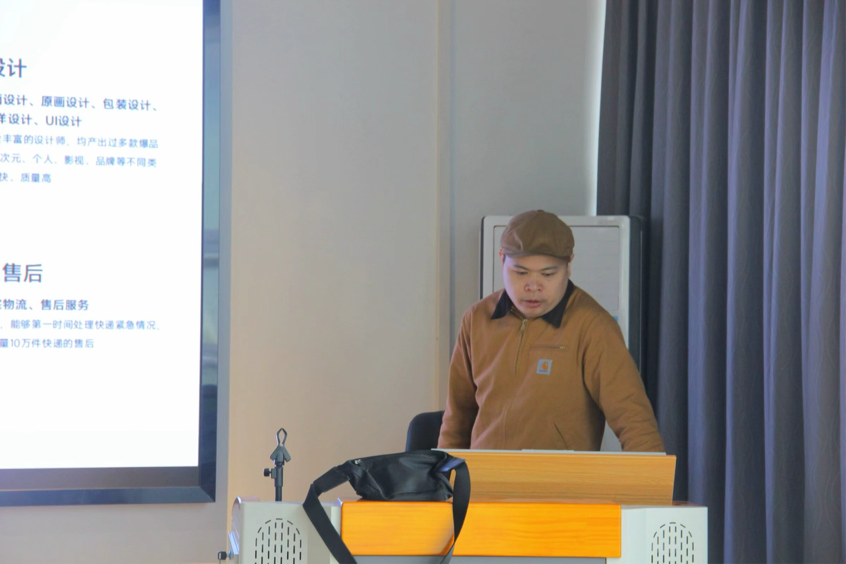 宣讲会上,1630全棉科技企业相关负责人梅老师详细介绍了公司的发展历程、服务板块,产品品类和团队优势。强调了公司在文创设计领域的专业性,供应链的完整性。1630全棉科技以年轻化、创新化为设计理念,致力于将前沿技术与现代审美相结合,打造出既具有趣又符合市场需求的文创产品。